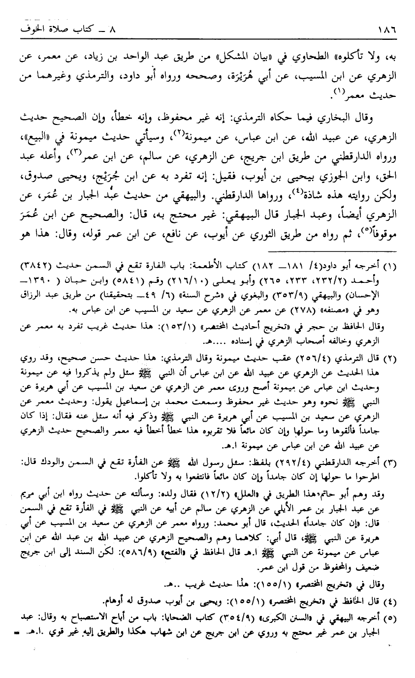 2 قال الترمذي "4/256" عقب حديث ميمونة وقال الترمذي: هذا حديث حسن صحيح، وقد روي هذا الحديث عن الزهري عن عبيد الله عن ابن عباس أن النبي صَلَّى اللَّهُ عَلَيْهِ وَسَلَّمَ سئل ولم يذكروا فيه عن ميمونة وحديث ابن عباس عن ميمونة أصح وروى معمر عن الزهري عن سعيد بن المسيب عن أبي هريرة عن النبي صلى الله صَلَّى اللَّهُ عَلَيْهِ وَسَلَّمَ ونحوه وهو حديث غير محفوظ وسمعت محمد بن إسماعيل يقول: وحديث معمر عن الزهري عن سعيد بن المسيب عن أبي هريرة عن النبي صَلَّى اللَّهُ عَلَيْهِ وَسَلَّمَ ذكر فيه أنه سئل عنه فقال: إذا كان جامداً فألقوها وما حولها وإن كان مائعا فلا تقربوه هذا خطأ فيه معمر والصحيح حديث الزهري عن عبيد الله عن ابن عباس عن ميمونة ا?.