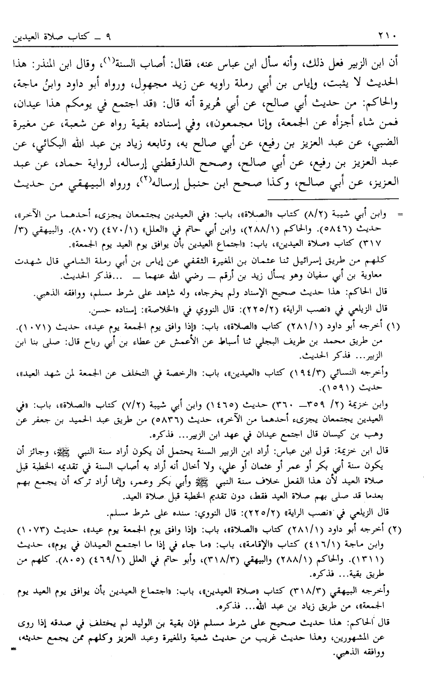 وابن خزيمة "2/359- 360" حديث "1465" وابن أبي شيبة "2/7" كتاب الصلاة، باب: في العيدين يجتمعان يجزئ أحدهما من الآخر، حديث "5836" من طريق عبد الحميد بن جعفر عن وهب بن كيسان قال اجتمع عيدان في عهد ابن الزبير ... فذكره.