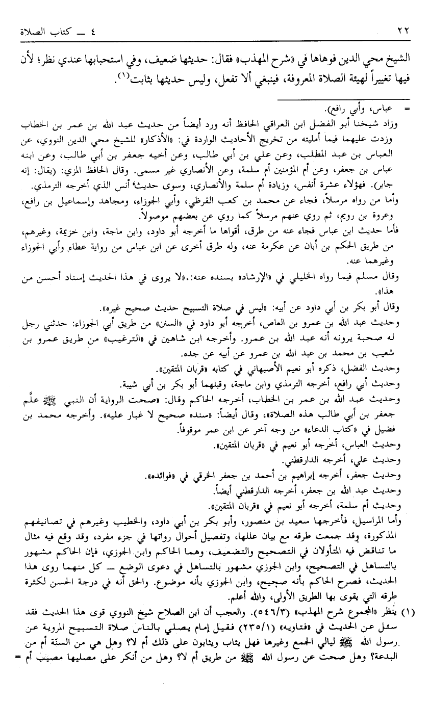 الشَّيْخِ مُحْيِي الدِّينِ فَوَهَّاهَا فِي شَرْحِ الْمُهَذَّبِ فَقَالَ حَدِيثُهَا ضَعِيفٌ وَفِي اسْتِحْبَابِهَا عِنْدِي نَظَرٌ لِأَنَّ فِيهَا تَغْيِيرًا لِهَيْئَةِ الصَّلَاةِ الْمَعْرُوفَةِ فَيَنْبَغِي أن لا تُفْعَلَ وَلَيْسَ حَدِيثُهَا بِثَابِتٍ1.