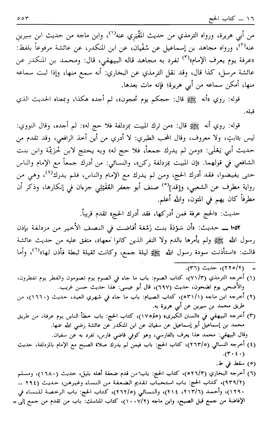 حَدِيثُ الْحَجُّ عَرَفَةَ فَمَنْ أَدْرَكَهَا فَقَدْ أَدْرَكَ الْحَجَّ تَقَدَّمَ قَرِيبًا.