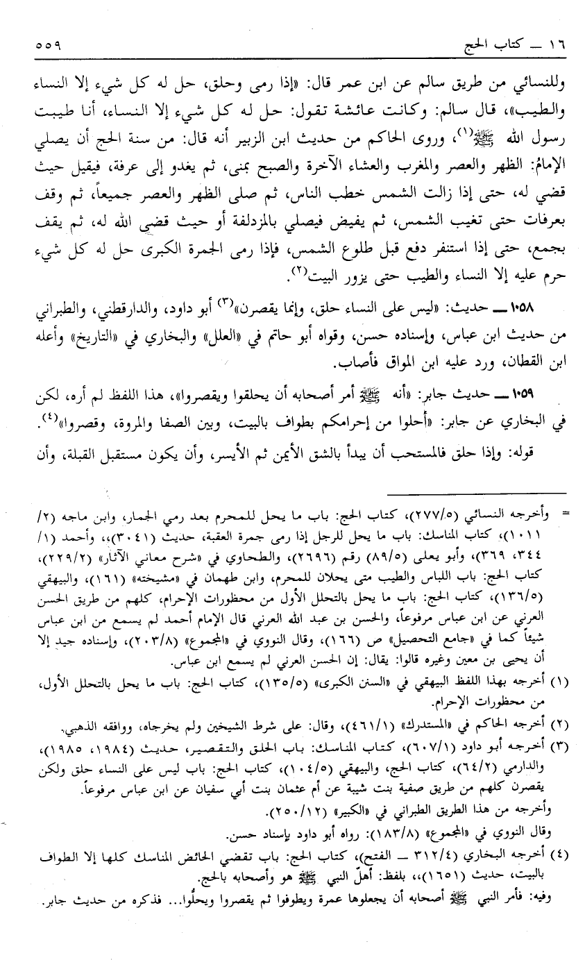1059 - حَدِيثُ جَابِرٍ أَنَّهُ صَلَّى اللَّهُ عَلَيْهِ وَسَلَّمَ أَمَرَ أَصْحَابَهُ أَنْ يَحْلِقُوا وَيُقَصِّرُوا هَذَا اللَّفْظُ لَمْ أَرَهُ لَكِنْ فِي الْبُخَارِيِّ عَنْ جَابِرٍ "أَحِلُّوا مِنْ إحْرَامِكُمْ بِطَوَافٍ بِالْبَيْتِ وَبَيْنَ الصَّفَا وَالْمَرْوَةِ وَقَصِّرُوا" 4.