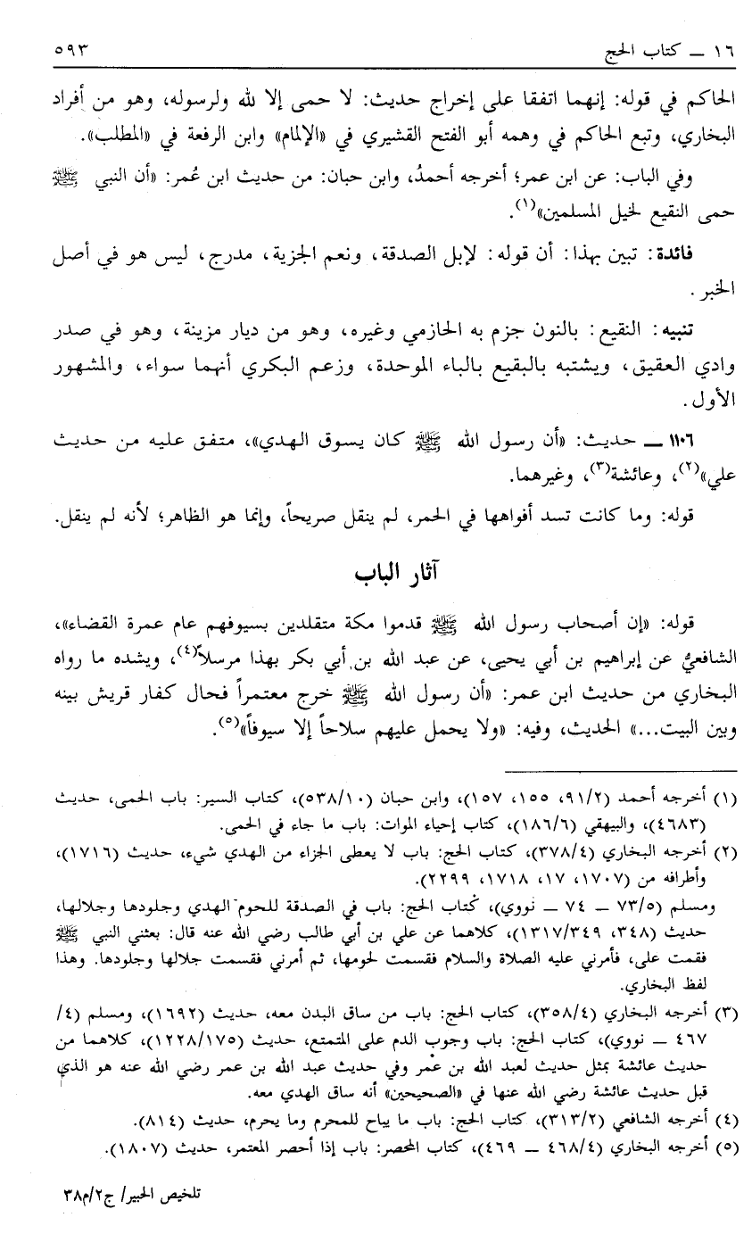 الْحَاكِمُ في قوله إنها اتفقا على إحراج حَدِيثِ لَا حِمَى إلَّا لِلَّهِ وَلِرَسُولِهِ وَهُوَ مِنْ أَفْرَادِ الْبُخَارِيِّ وَتَبِعَ الْحَاكِمَ فِي وَهْمِهِ أَبُو الْفَتْحِ الْقُشَيْرِيُّ فِي الْإِلْمَامِ وَابْنُ الرِّفْعَةِ فِي الْمَطْلَبِ.