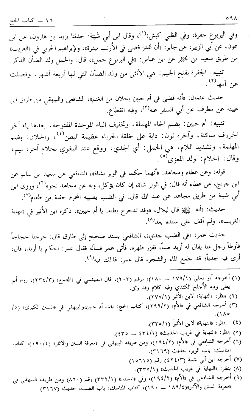 9 أخرجه الشافعي في "الأم" "2/194"، وفي "المسند" "1/332"، رقم "860"، ومن طريقه البيهقي في "معرفة السنن والآثار" "4/189- 190"، كتاب المناسك: باب الضب، حديث "3167".