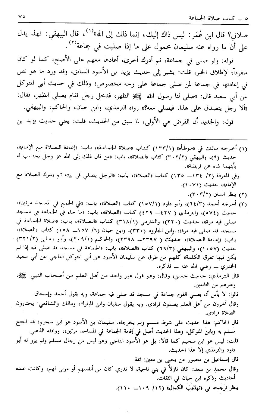 3 أخرجه أحمد "3/64"، وأبو داود "1/157" كتاب الصلاة: باب في الجمع في المسجد مرتين، حديث "574"، والترمذي "427- 429" كتاب الصلاة، باب ما جاء في الجماعة في مسجد صلى فيه مرة، حديث "220"، والدارمي "1/318" كتاب الصلاة، باب: صلاة الجماعة في مسجد قد صلى فيه مرة، وابن الجارود "330"، وابن حبان "6/157-158" كتاب الصلاة، باب: إعادة الصلاة، حديث "2397-2398"، والحاكم "1/209"، وأبو يعلى "2/321" حديث "1057"، والبيهقي "3/69" كتاب الصلاة، باب: الجماعة ي مسجد قد صلى فيه إذا لم يكن فيها تفرق الكلمة، كلهم من طرق عن سليمان الأسود عن أبي المتوكل الناجي عن أبي سعيد الخدري -رضي الله عنه- فذكره.