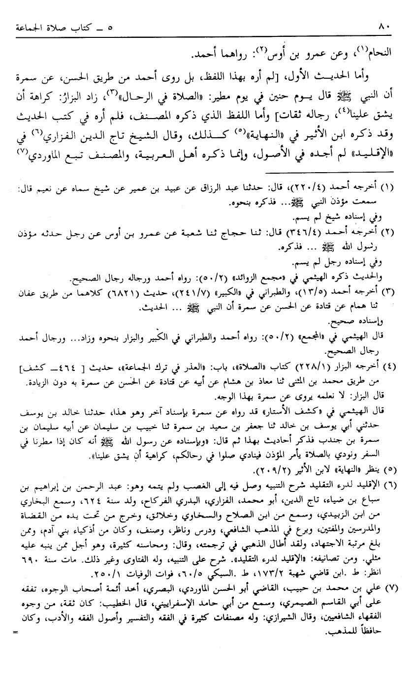 وَأَمَّا الْحَدِيثُ الْأَوَّلُ فَلَمْ أَرَهُ بِهَذَا اللَّفْظِ بَلْ رَوَى أَحْمَدُ مِنْ طَرِيقِ الْحَسَنِ عَنْ سَمُرَةَ أَنَّ النَّبِيَّ صَلَّى اللَّهُ عَلَيْهِ وَسَلَّمَ قَالَ يَوْمَ حُنَيْنٍ فِي يَوْمٍ مَطِيرٍ "الصَّلَاةُ فِي الرِّحَالِ" 3 زَادَ الْبَزَّارُ كَرَاهَةَ أَنْ يَشُقَّ عَلَيْنَا4 رحاله ثِقَاتٌ وَأَمَّا اللَّفْظُ الَّذِي ذَكَرَهُ الْمُصَنِّفُ فَلَمْ أَرَهُ فِي كُتُبِ الْحَدِيثِ وَقَدْ ذَكَرَهُ ابْنُ الْأَثِيرِ فِي النِّهَايَةِ5 كَذَلِكَ وَقَالَ الشَّيْخُ تَاجُ الدِّينِ الْفَزَارِيّ6 فِي الْإِقْلِيدِ لَمْ أَجِدْهُ فِي الْأُصُولِ وَإِنَّمَا ذَكَرَهُ أَهْلُ الْعَرَبِيَّةِ وَالْمُصَنِّفُ تَبِعَ الْمَاوَرْدِيَّ7.
