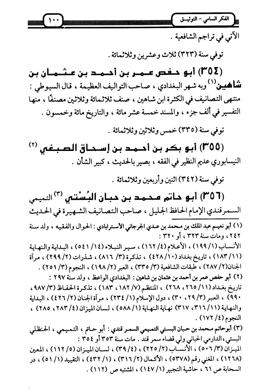 3 أبو حاتم محمد بن حبان البستي التميمي السمرقندي: أبو حاتم، التميمي، الحنظلي البستي، الدارمي الحباني ولي قضاء سمرقند. مات سنة 353 أو 354: