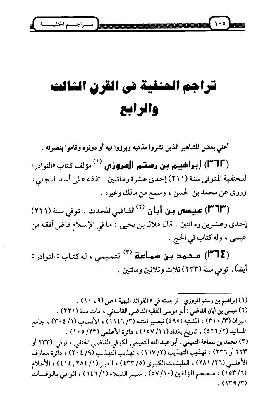 364- محمد بن سماعة 3: التميمي، له كتاب "النوادر" أيضا. توفي سنة "233" ثلاث وثلاثين ومائتين.