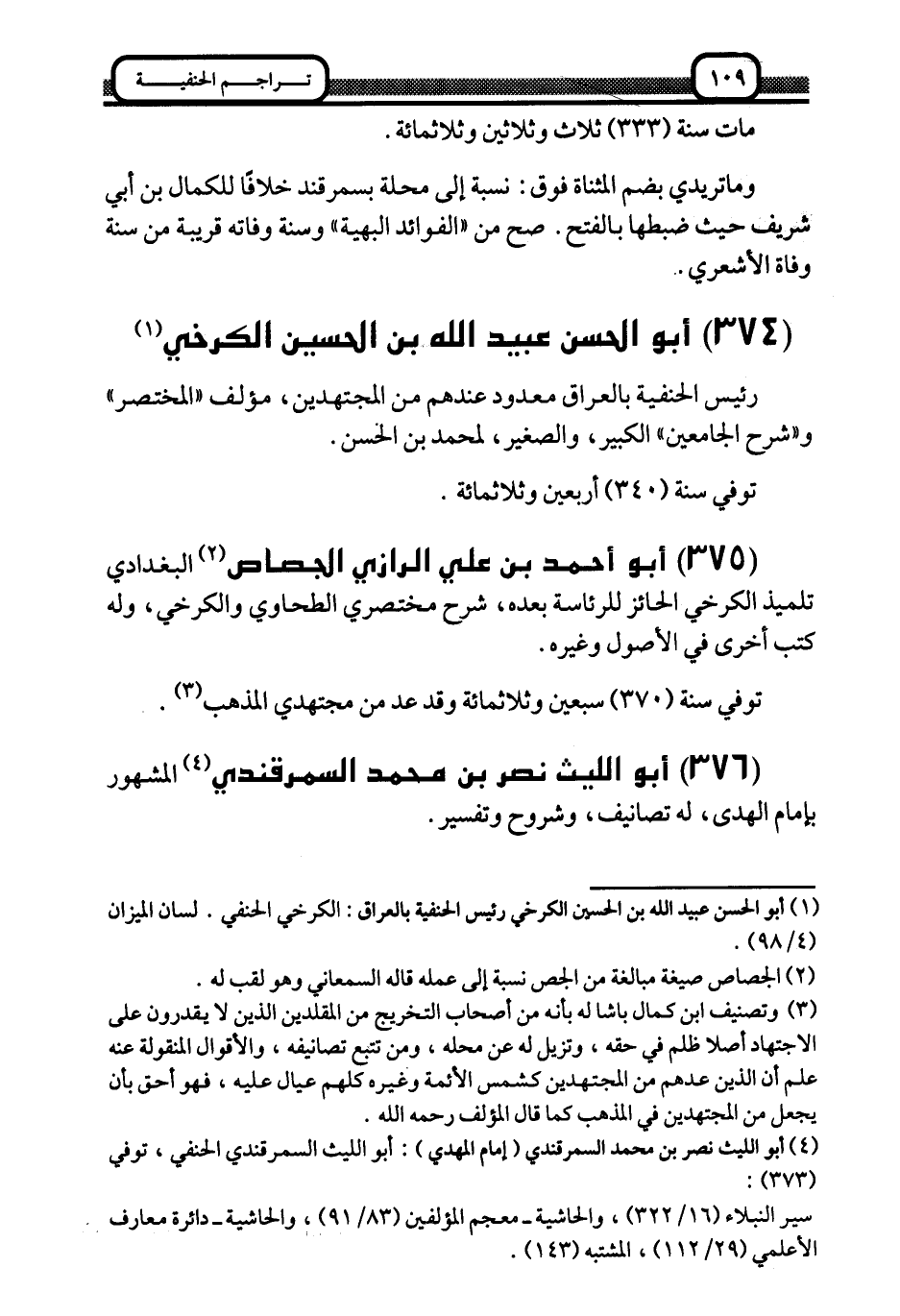 4 أبو الليث نصر بن محمد السمرقندي "إمام المهدي": أبو الليث السمرقندي الحنفي، توفي "373":