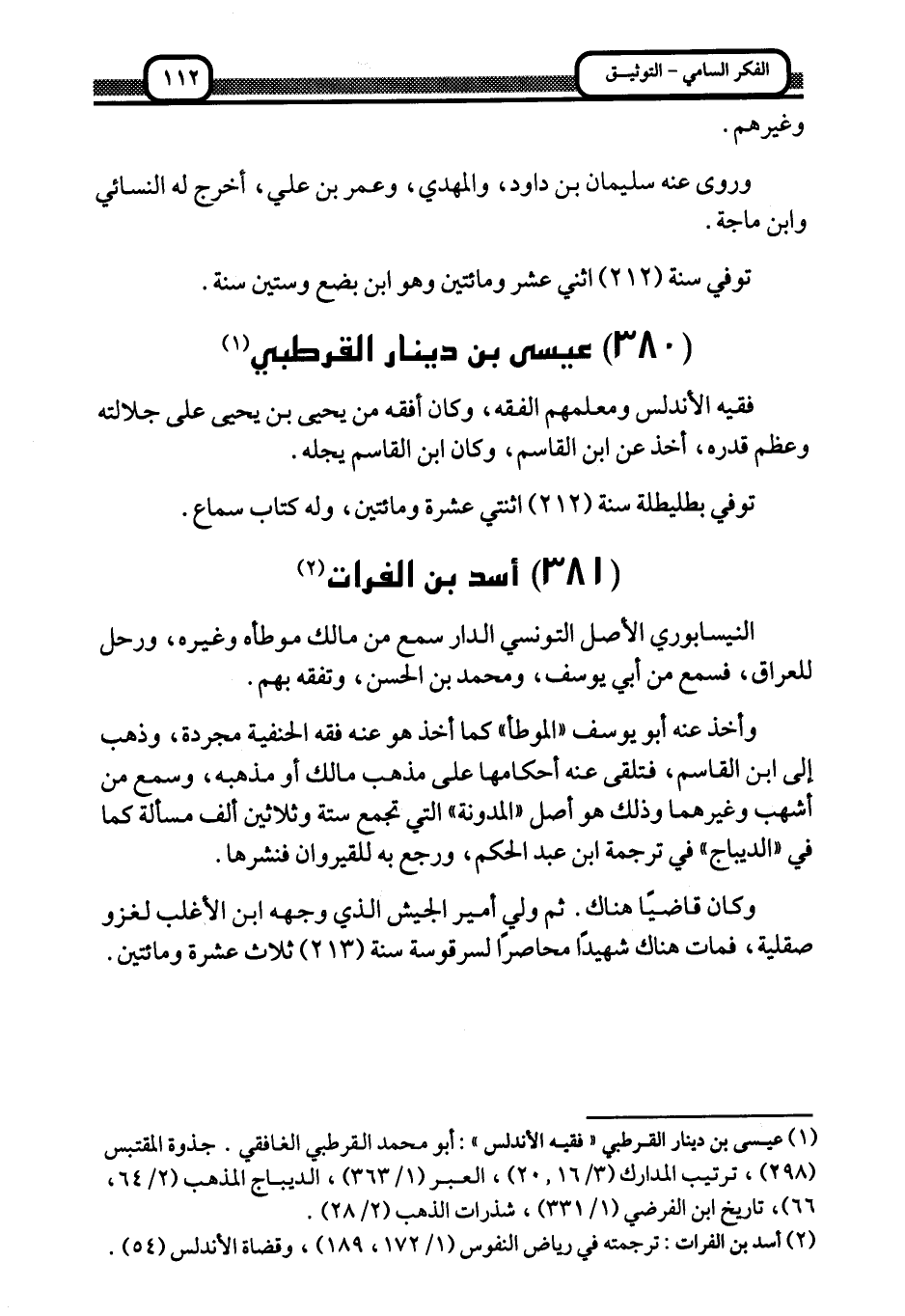 1 عيسى بن دينار القرطبي "فقيه الأندلس": أبو محمد القرطبي الغافقي. جذوة المقتبس "298"، ترتيب المدارك "3/ 16، 20"، العبر "1/ 363"، الديباج المذهب "2/ 64، 66"، تاريخ ابن الفرضي "1/ 331"، شذرات الذهب "2/ 28".