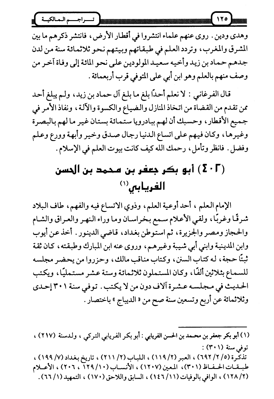 1 أبو بكر جعفر بن محمد بن الحسن الفريابي: أبو بكر الفريابي التركي، ولد سنة "217"، توفي سنة "301":