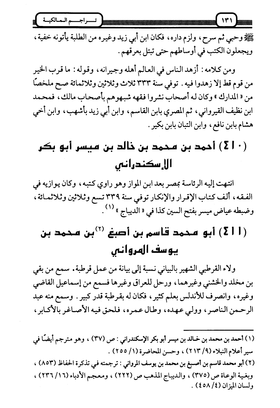 2 أبو محمد قاسم بن أصبغ بن محمد بن يوسف المرواني: ترجمته في تذكرة الحفاظ "853"، وبغية الوعاة ص"375"، والديباج المذهب ص"222"، ومعجم الأدباء "16/ 236"، ولسان الميزان "4/ 458".