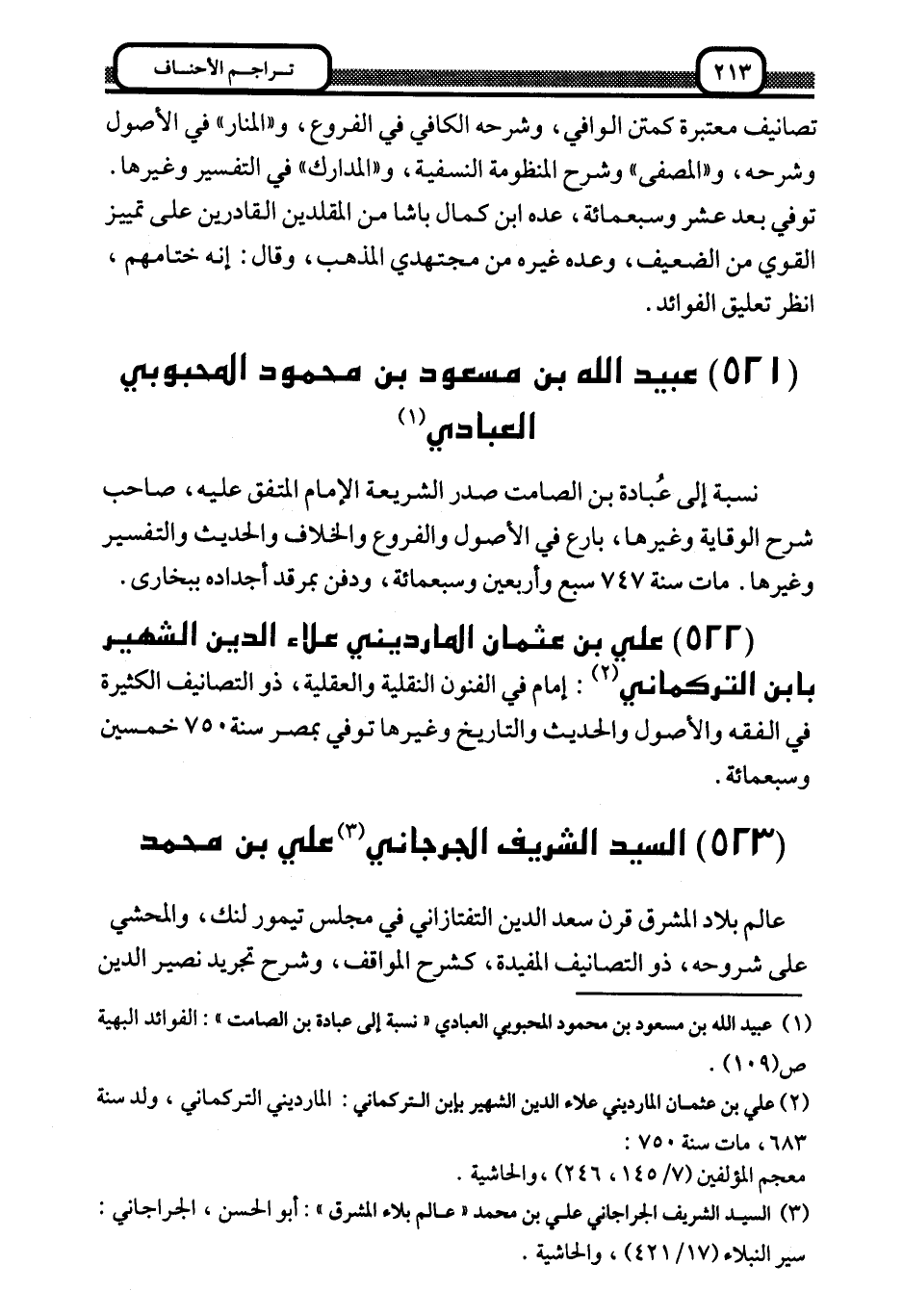 1 عبيد الله بن مسعود بن محمود المحبوبي العبادي "نسبة إلى عبادة بن الصامت": الفوائد البهية ص"109".