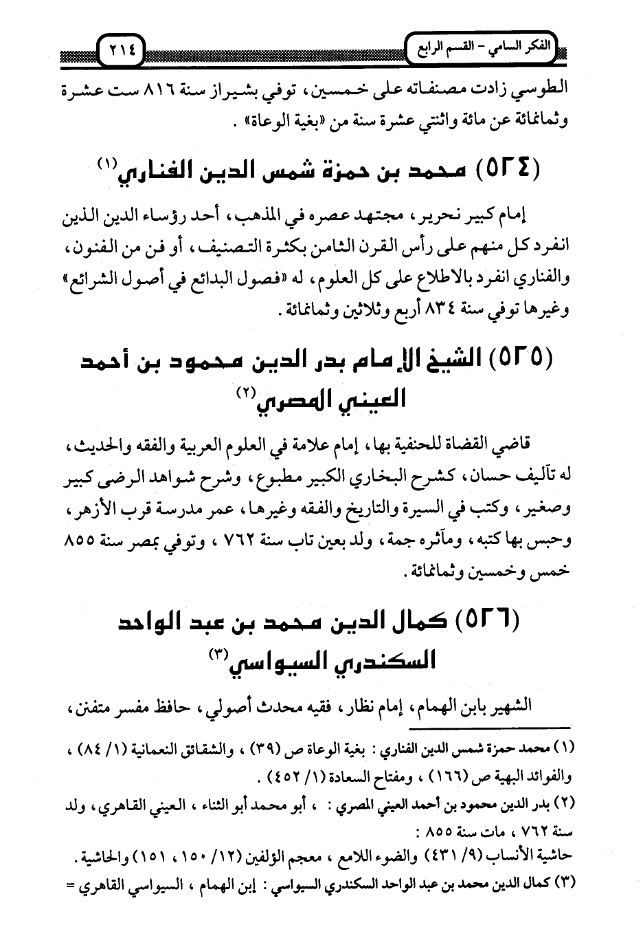 3 كمال الدين محمد بن عبد الواحد السكندري السيواسي: ابن الهمام، السيواسي القاهري الحنفي، ولد سنة 790: