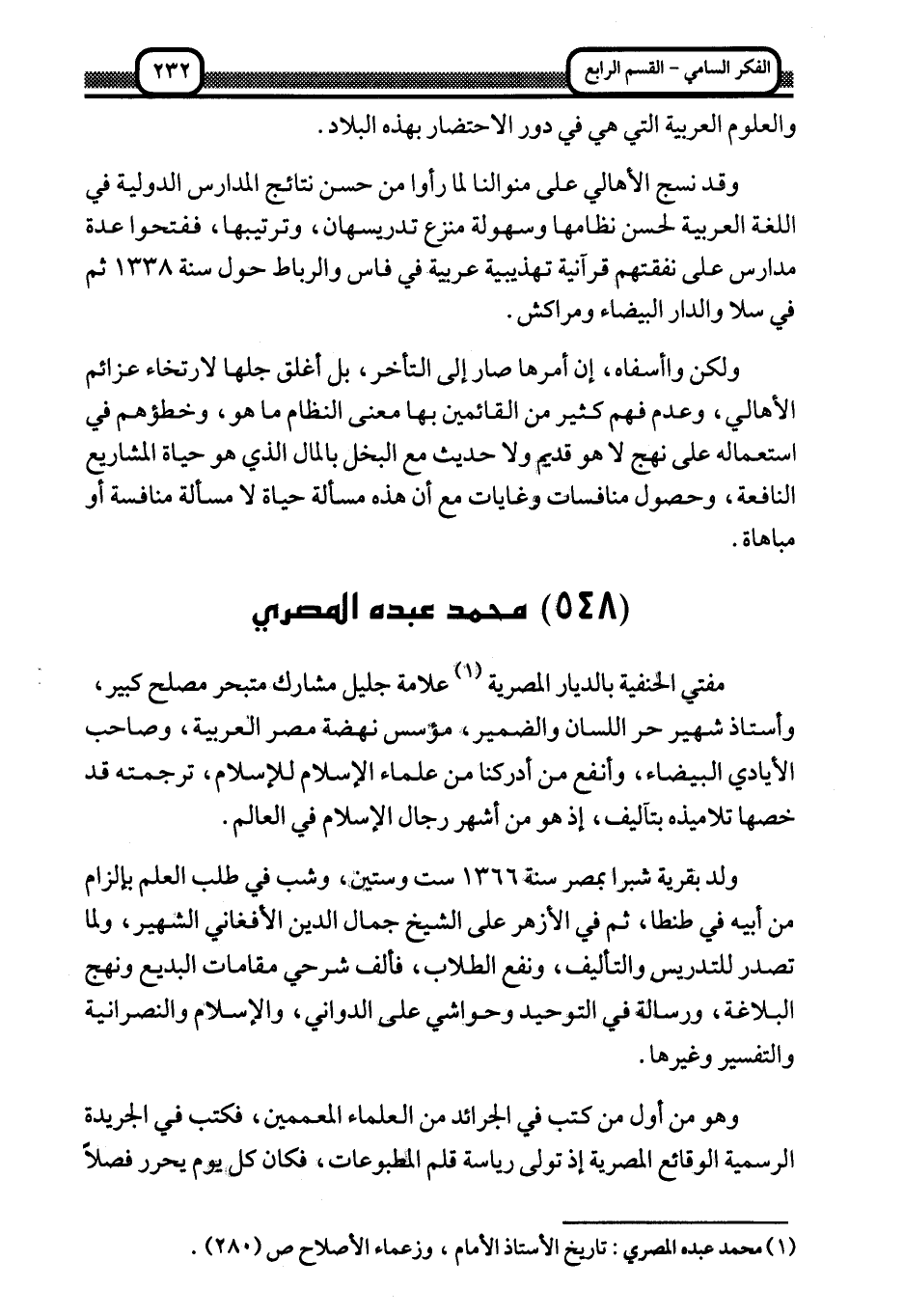 1 محمد عبده المصري: تاريخ الأستاذ الإمام، وزعماء الإصلاح ص"280".