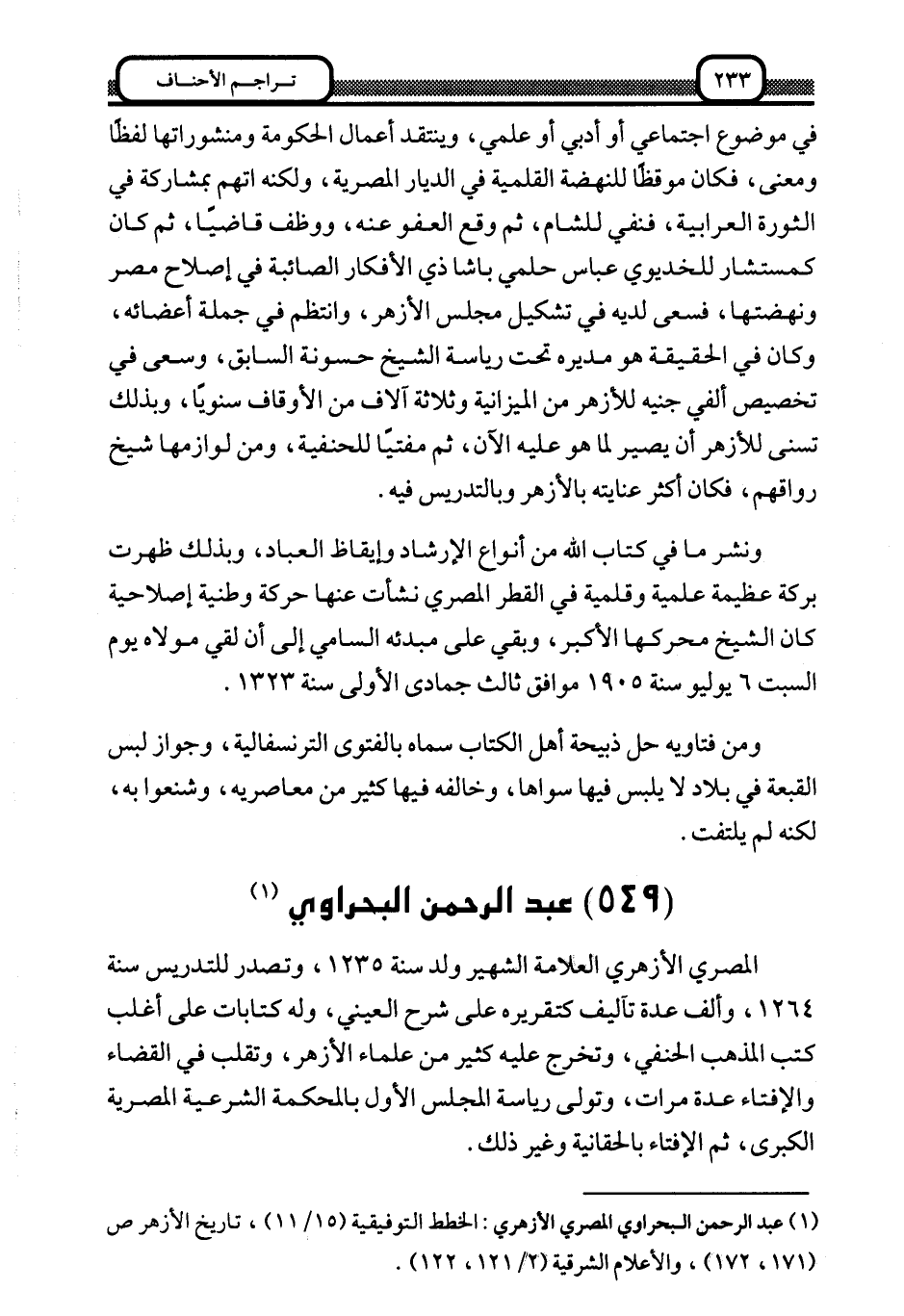 1 عبد الرحمن البحراوي المصري الأزهري: الخطط التوفيقية "15/ 11"، تاريخ الأزهر ص"171، 172"، والأعلام الشرقية "2/ 121، 122".