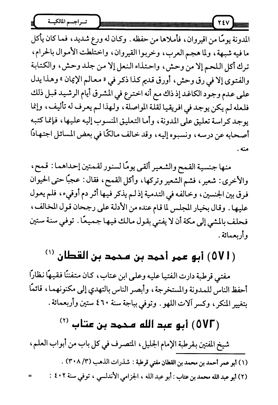 2 أبو عبد الله محمد بن عتاب: أبو عبد الله، الجزامي الأندلسي، توفي سنة 402: سير النبلاء "18/ 328"، نسيم الرياض، المعين ص"1465"، الوافي بالوفيات "4/ 79"، العبر "3/ 250"، بغية الملتمس ص"115".