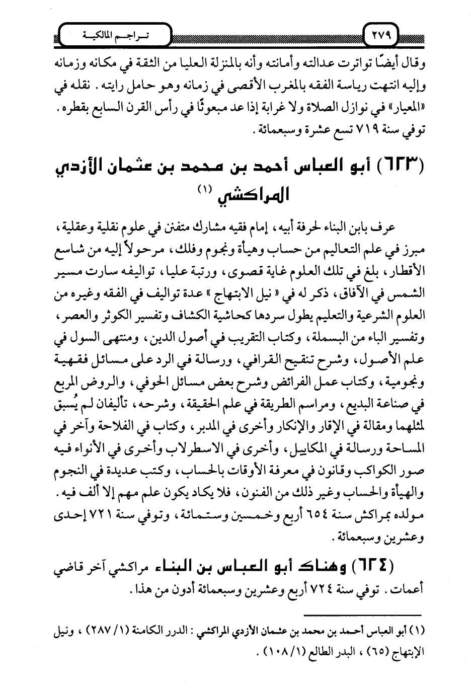 624- وهناك أبو العباس بن البناء مراكشي آخر قاضي أعمات. توفي سنة 724 أربع وعشرين وسبعمائة أدون من هذا.