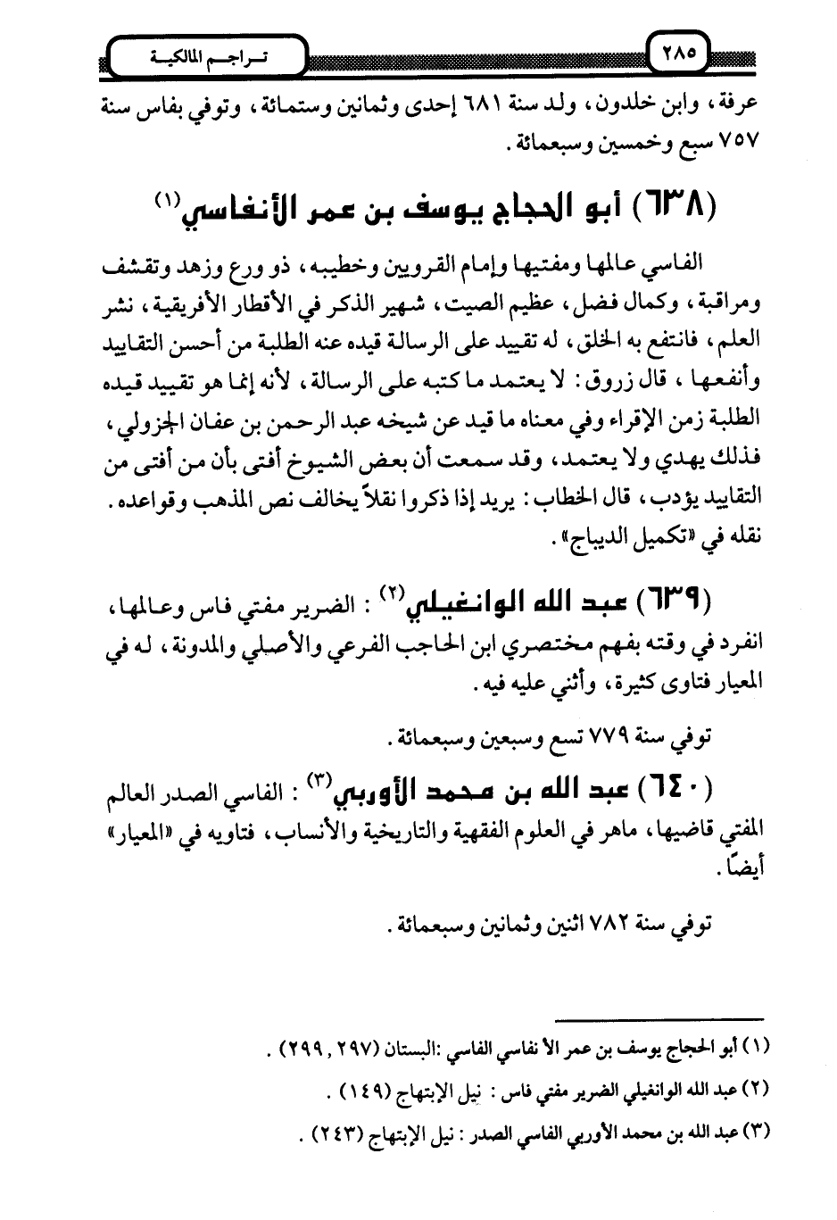 1 أبو الحجاج يوسف بن عمر الأنفاسي الفاسي: البستان "297، 299".