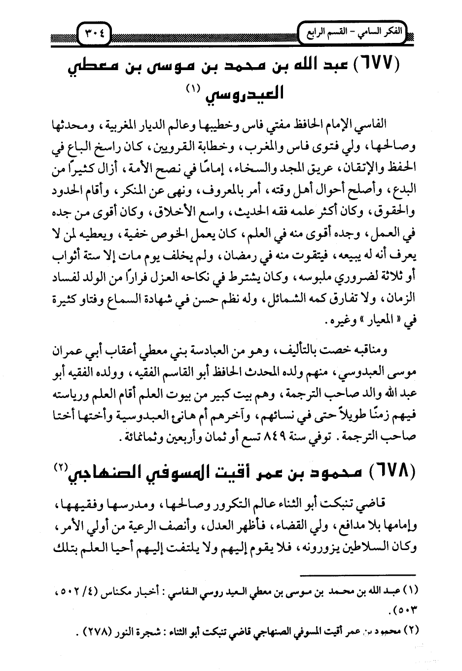 1 عبد الله بن محمد بن موسى بن معطي العيدروسي الفاسي: أخبار مكناس "4/ 502، 503".