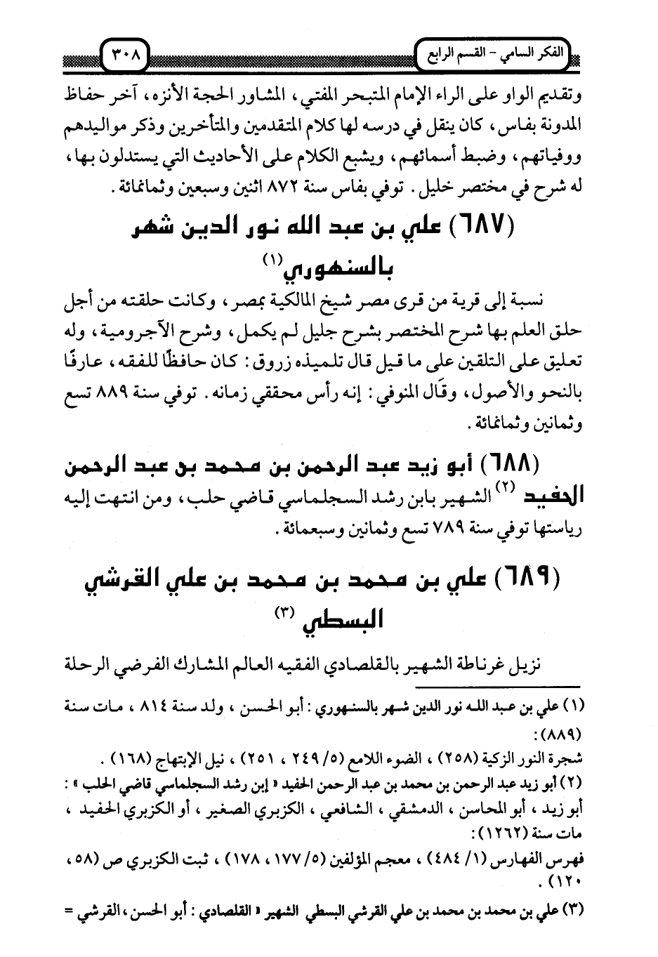 1 علي بن عبد الله نور الدين بالسنهوري: أبو الحسن، ولد سنة 814، مات سنة "889":