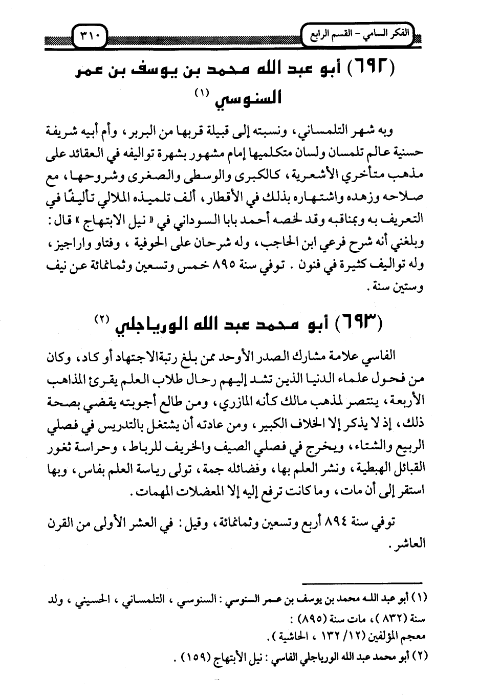 1 أبو عبد الله محمد بن يوسف بن عمر السنوسي: السنوسي، التلمساني، الحسيني، ولد سنة "832"، مات سنة "895":