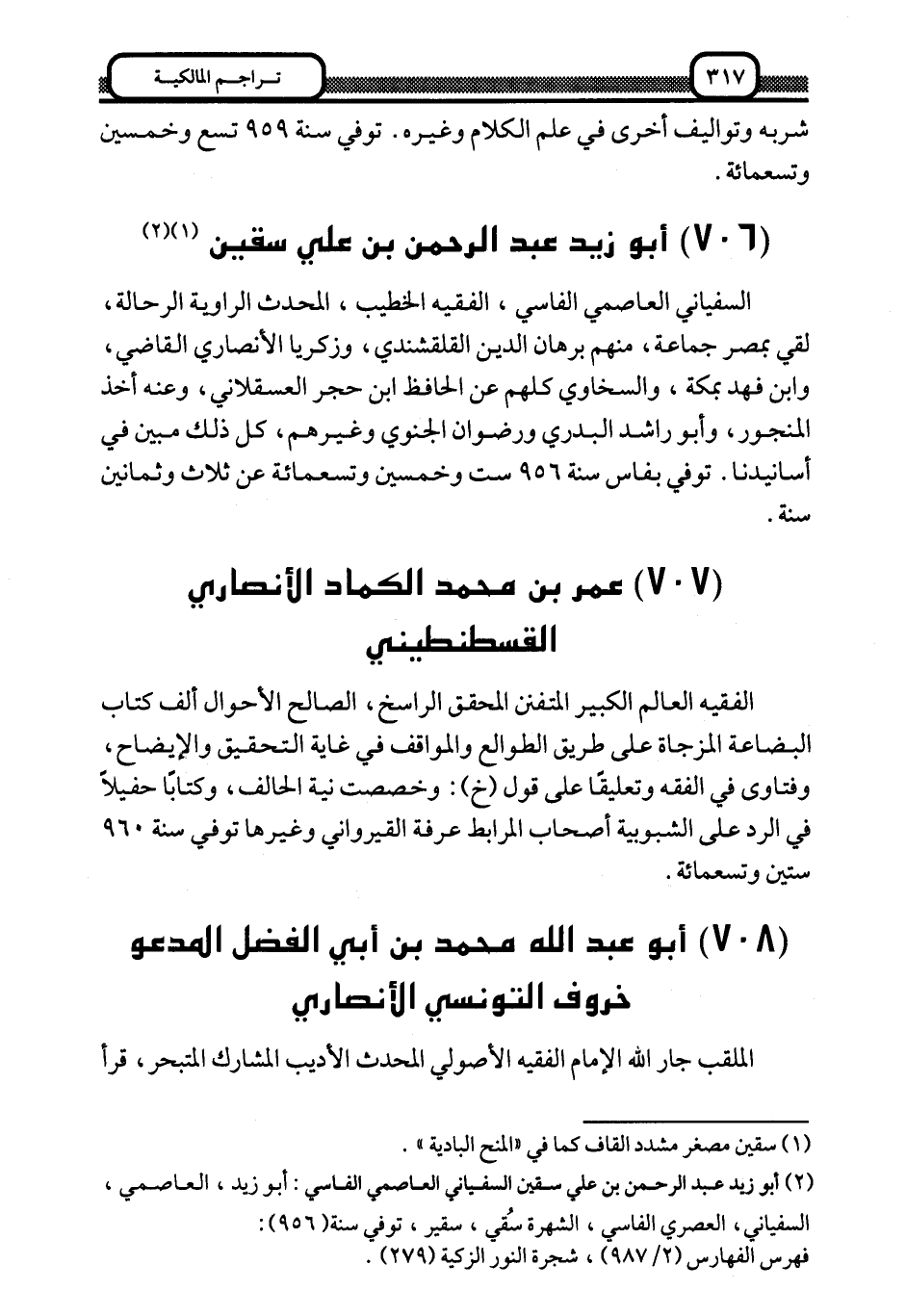 2 أبو زيد عبد الرحمن بن علي سقين السفياني العاصمي الفاسي: أبو زيد، العاصمي، السفياني، العصري الفاسي، الشهرة سقي، سقير، توفي سنة "956":