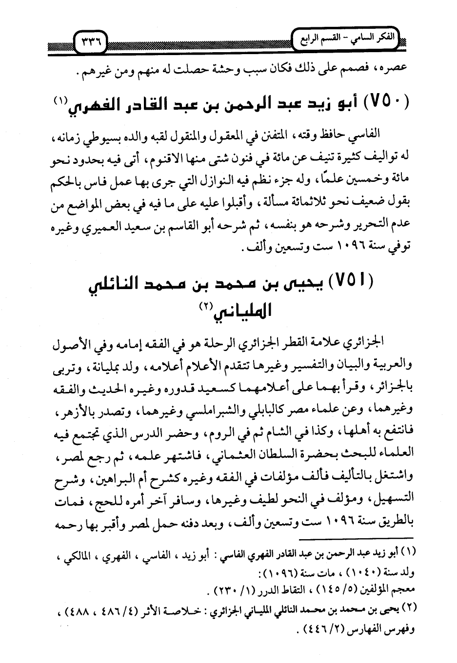 1 أبو زيد عبد الرحمن بن عبد القادر الفهري الفاسي: أبو زيد، الفاسي، الفهرين المالكي، ولد سنة "1040"، مات سنة "1096":