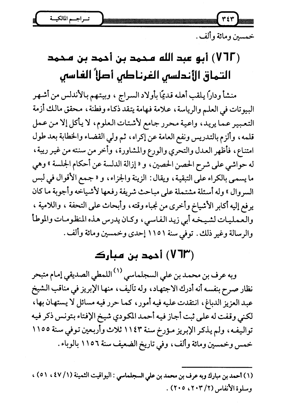 1 أحمد بن مبارك وبه عرف بن محمد بن علي السجلماسي: اليواقيت الثمينة "1/ 47، 51"، وسلوة الأنفاس "2/ 203، 205".