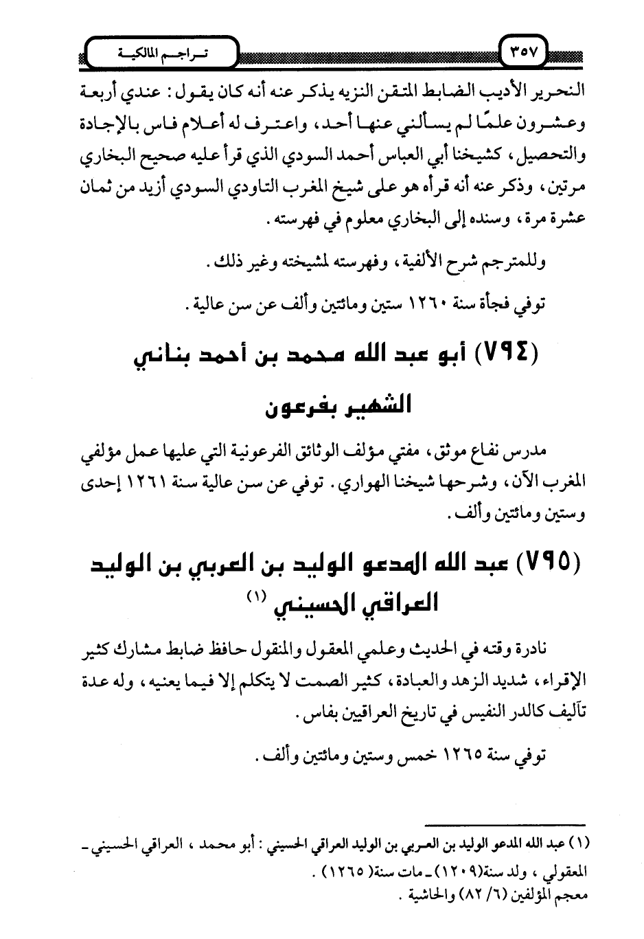 1 عبد الله المدعو الوليد بن العربي بن الوليد العراقي الحسيني: أبو محمد، العراقي الحسيني المعقولي، ولد سنة "1209" مات سنة "1265":