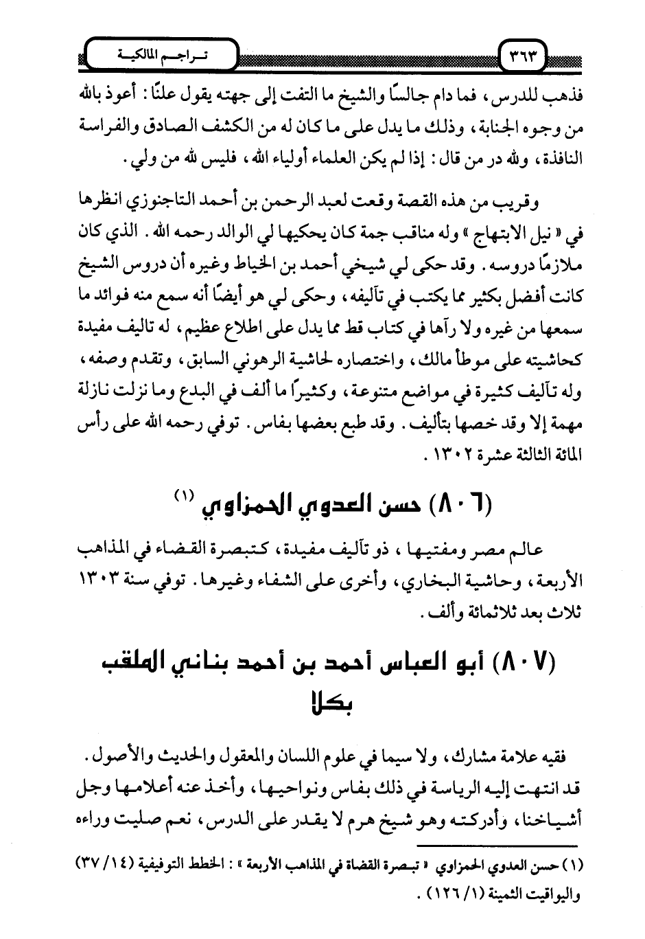 1 حسن العدوي الحمزاوي "تبصرة القضاة في المذاهب الأربعة": الخطط التوفيقية "14/ 37" واليواقيت الثمينة "1/ 126".
