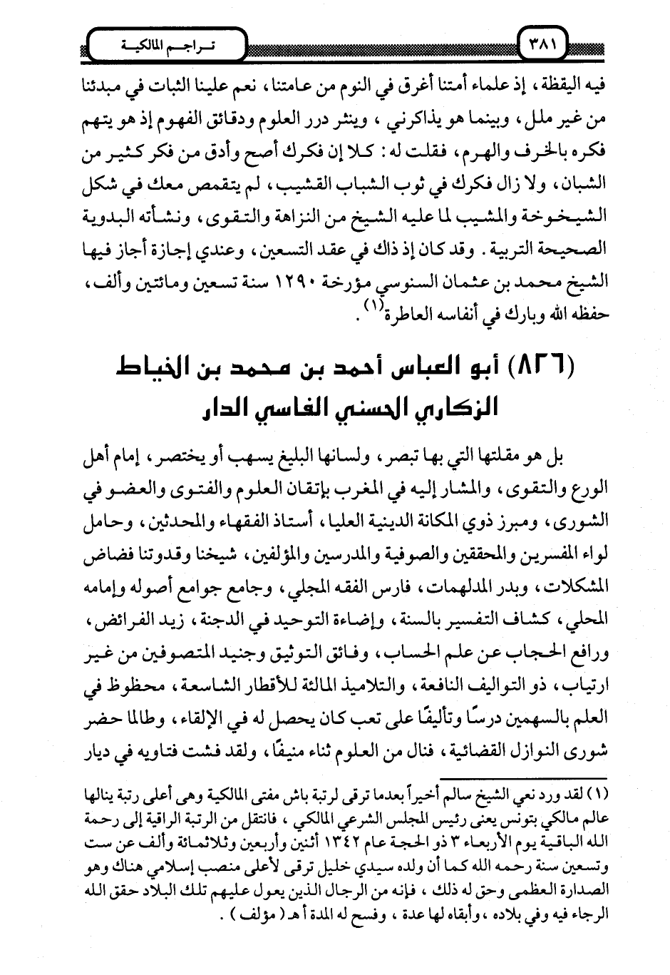 826- أبو العباس أحمد بن محمد بن الخياط الزكاري الحسني الفاسي الدار: