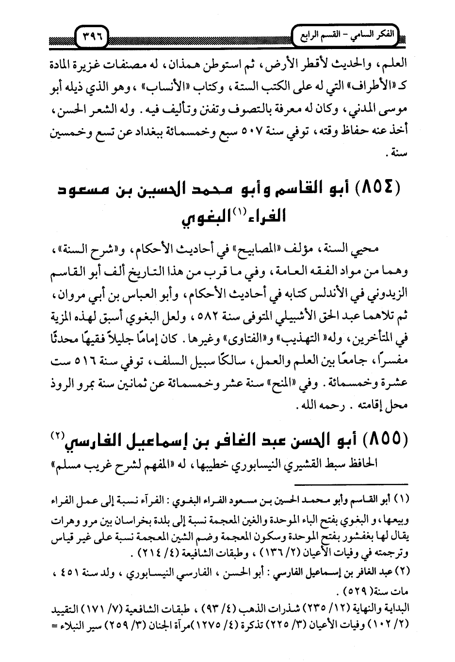 854- أبو القاسم وأبو محمد الحسين بن مسعود الفراء 1 البغوي: