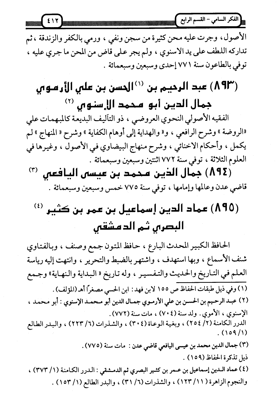 2 عبد الرحيم بن الحسن بن علي الأرموي جمال الدين أبو محمد الإسنوي: أبو محمد، الإسنوي، الأموي. ولد سنة "704"، مات سنة "772".