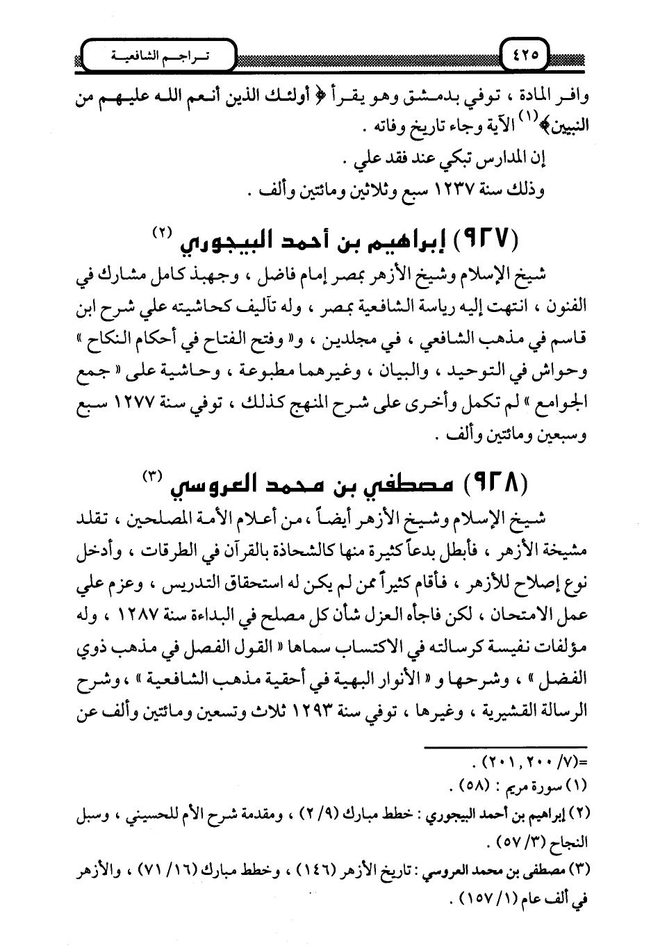 2 إبراهيم بن أحمد البيجوري: خطط مبارك "9/ 2"، ومقدمة شرح الأم للحسيني، وسبل النجاح "3/ 57".