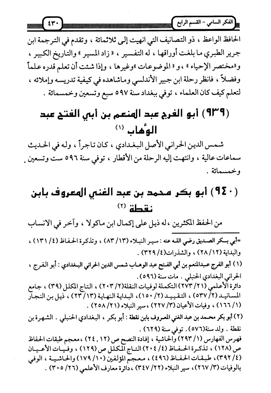 940- أبو بكر محمد بن عبد الغني المعروف بابن نقطة 2: