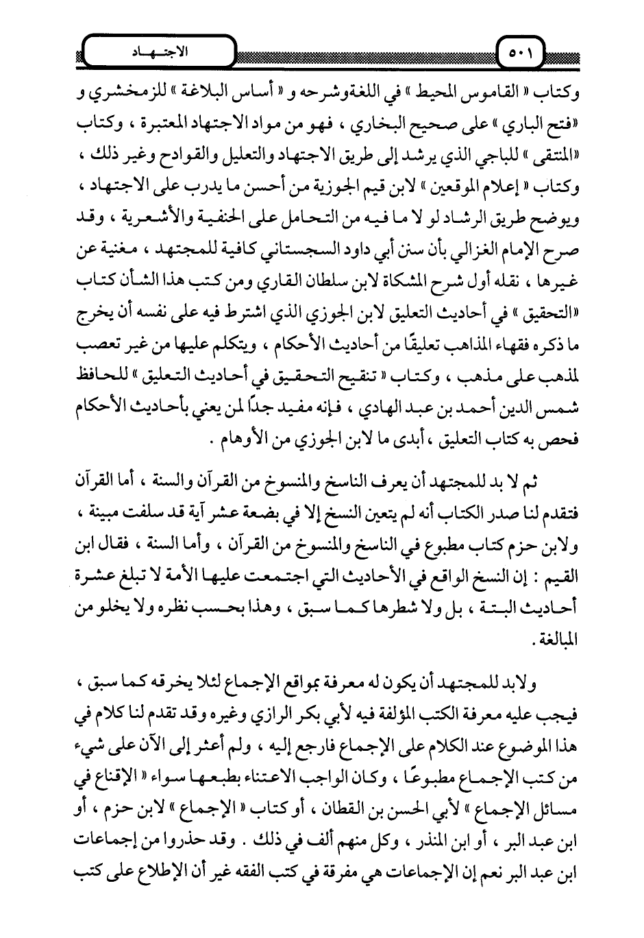 ولا بد للمجتهد أن يكون له معرفة بمواقع الإجماع لئلا يخرقه كما سبق، فيجب عليه معرفة الكتب المؤلفة فيه لأبي بكر الرازي وغيره وقد تقدم لنا كلام في هذا الموضوع عند الكلام على الإجماع فارجع إليه، ولم أعثر إلى الآن على شيء من كتب الإجماع مطبوعا، وكان الواجب الاعتناء بطبعها سواء "الإقناع في مسائل الإجماع" لأبي الحسن بن القطان، أو كتاب "الإجماع" لابن حزم، أو ابن عبد البر، أو ابن المنذر، وكل منهم ألف في ذلك. وقد حذروا من إجماعات ابن عبد البر نعم إن الإجماعات هي مفرقة في كتب الفقه غير أن الاطلاع على كتب
