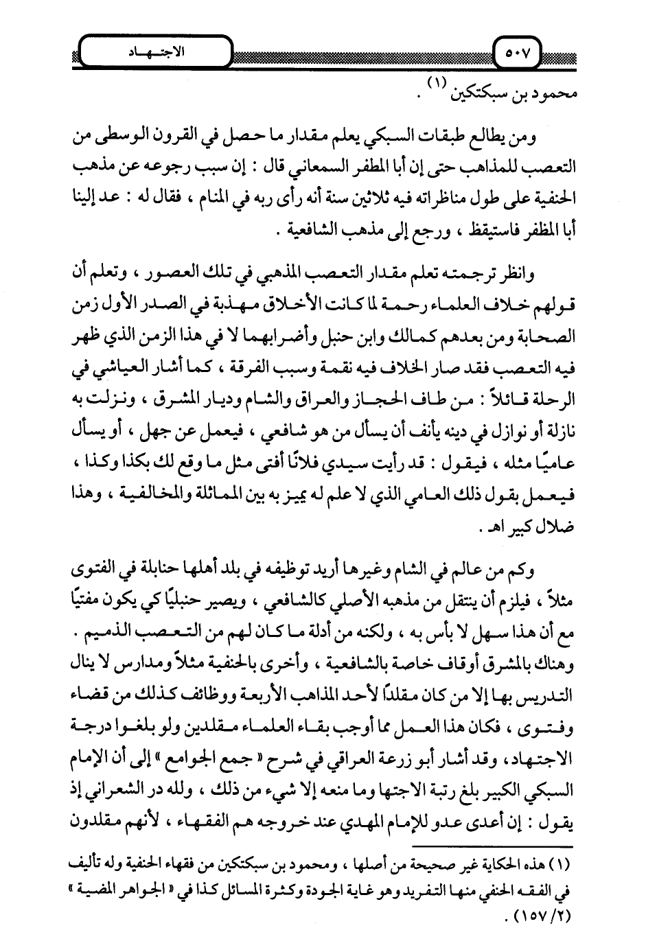 ومن يطالع طبقات السبكي يعلم مقدار ما حصل في القرون الوسطى من التعصب للمذاهب حتى إن أبا المظفر السمعاني قال: إن سبب رجوعه عن مذهب الحنفية على طول مناظراته فيه ثلاثين سنة أنه رأى ربه في المنام، فقال له: عد إلينا أبا المظفر فاستيقظ، ورجع إلى مذهب الشافعية.