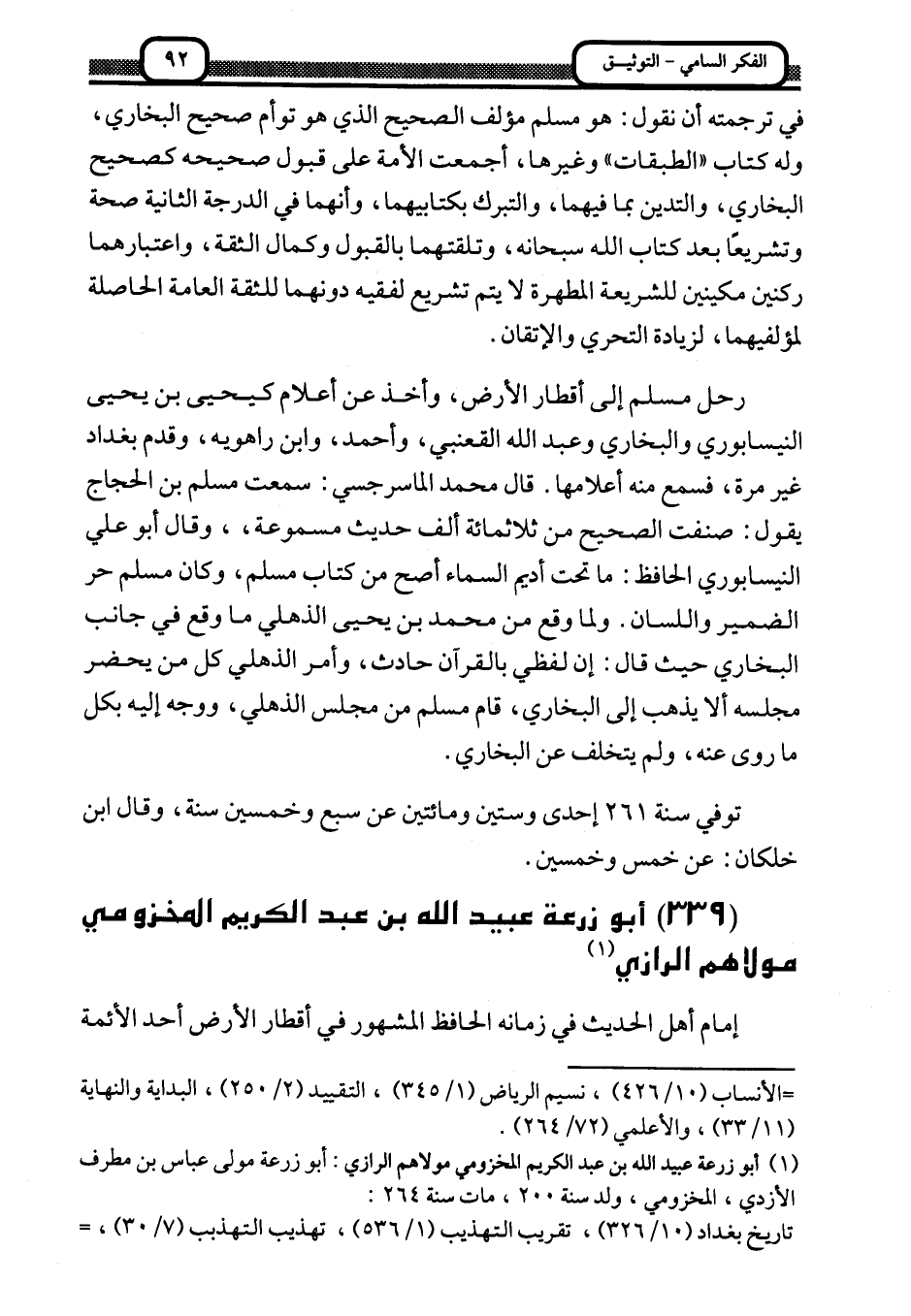 339- أبو زرعة عبيد الله بن عبد الكريم المخزومي مولاهم الرازي 1