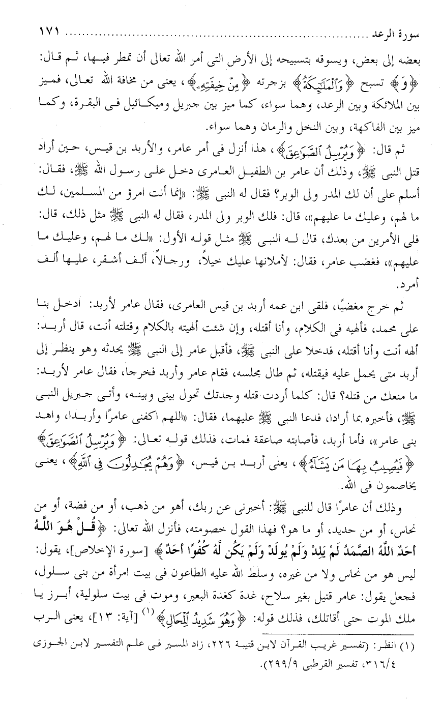 بني عامر ' ، فأما أربد ، فأصابته صاعقة فمات ، فذلك قوله تعالى : ( ويرسل الصواعق (
