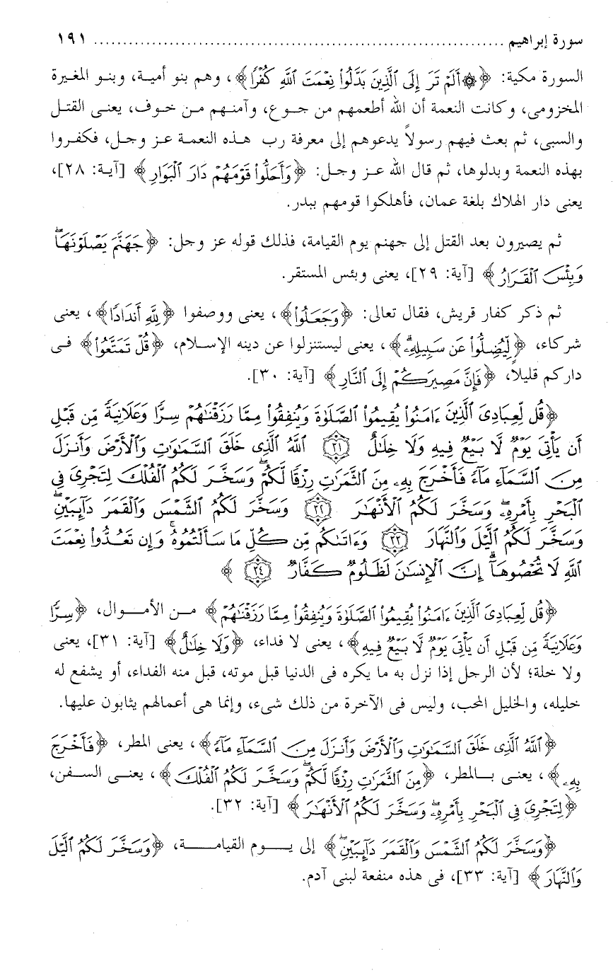 تفسير سورة إبراهيم من الآية : [ 31 - 34 ] .