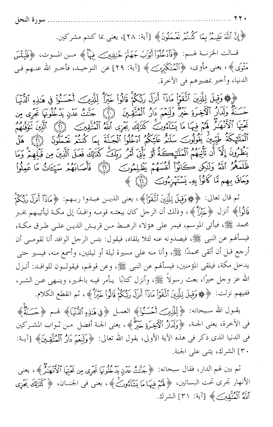 تفسير سورة النحل من الآية : [ 30 - 34 ] .