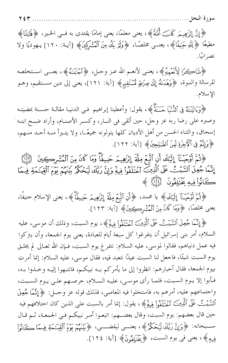 تفسير سورة النحل من الآية : [ 123 - 124 ] .
