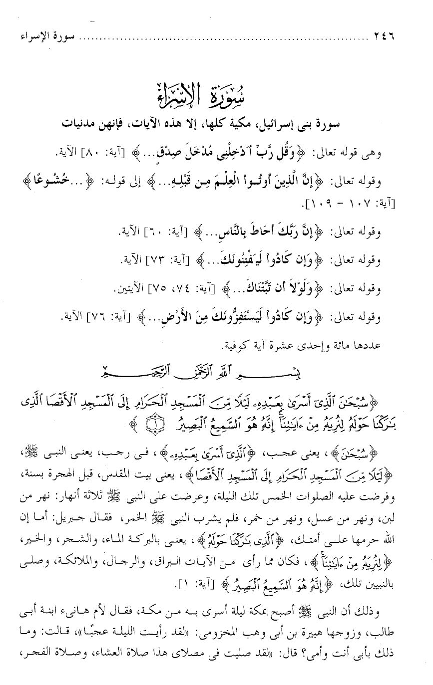 ( سورة بني إسرائيل ، مكية كلها ، إلا هذه الآيات ، فإنهن مدنيات )