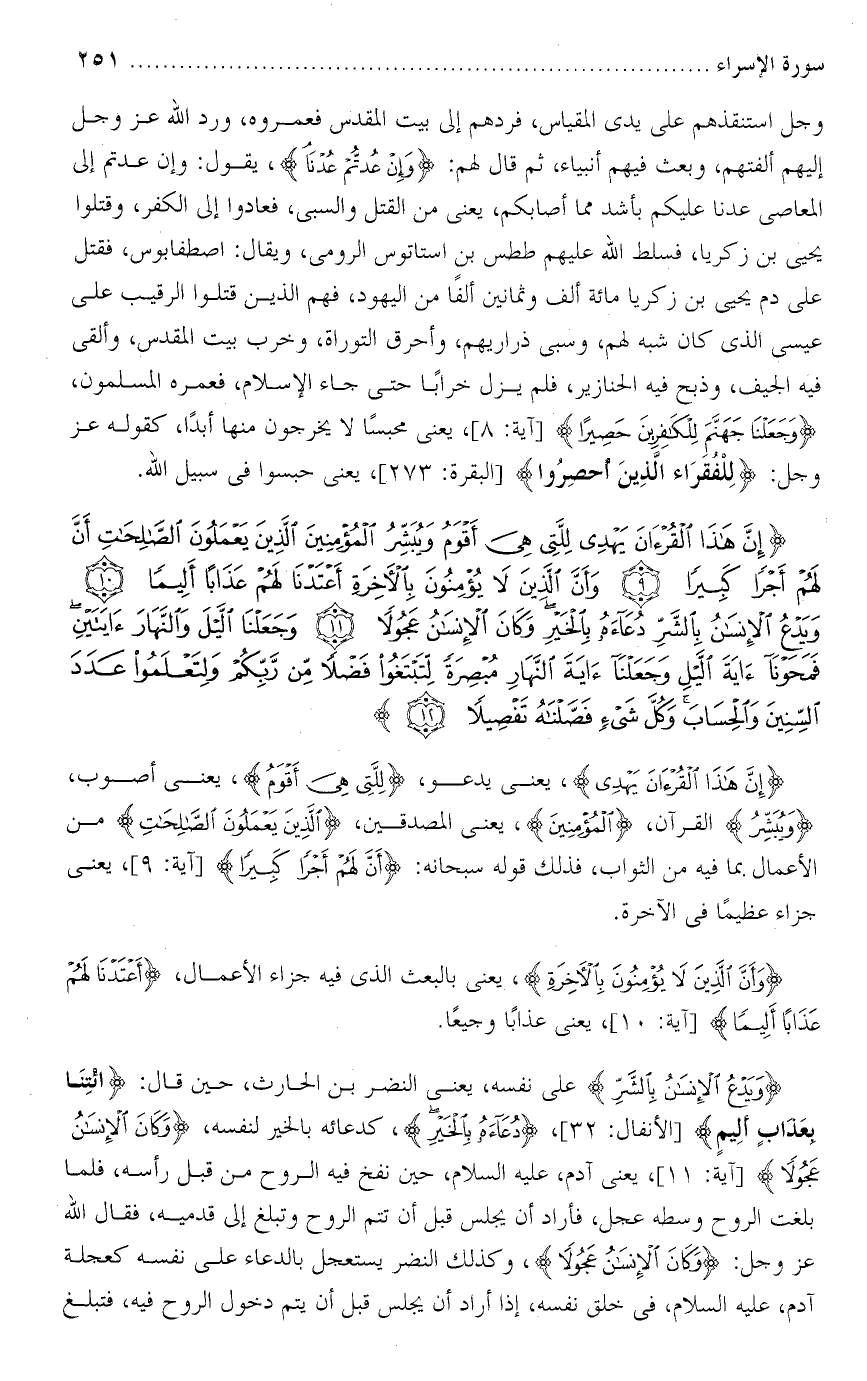 تفسير سورة الإسراء : [ 9 - 12 ] .