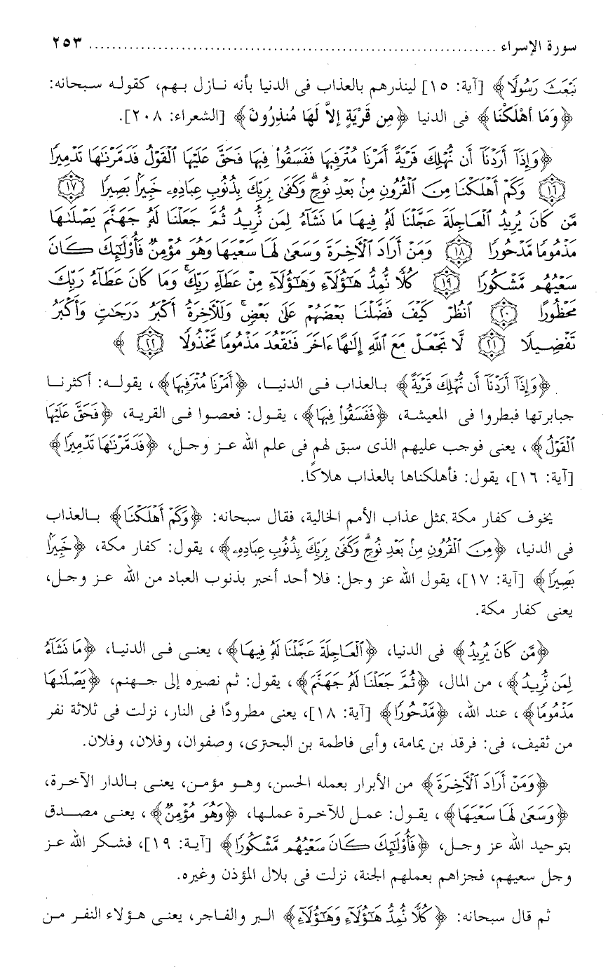 تفسير سورة الإسراء من الآية : [ 17 - 22 ] .