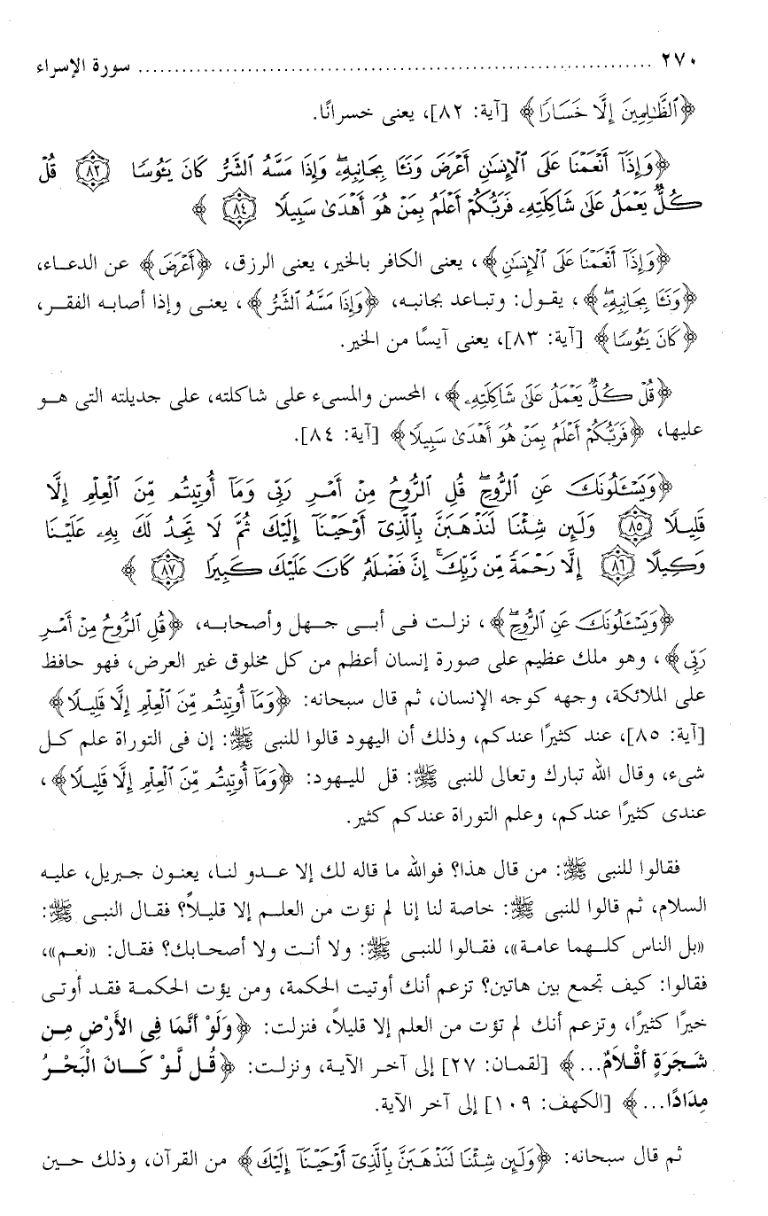 تفسير سورة الإسراء من الآية : [ 85 - 87 ] .