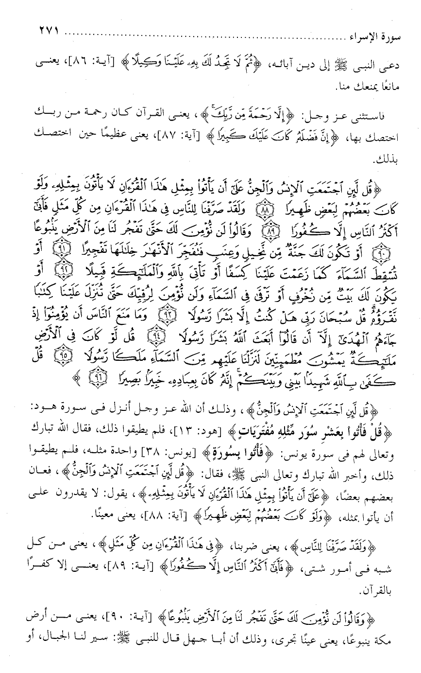 تفسير سورة الإسراء من الآية : [ 88 - 96 ] .