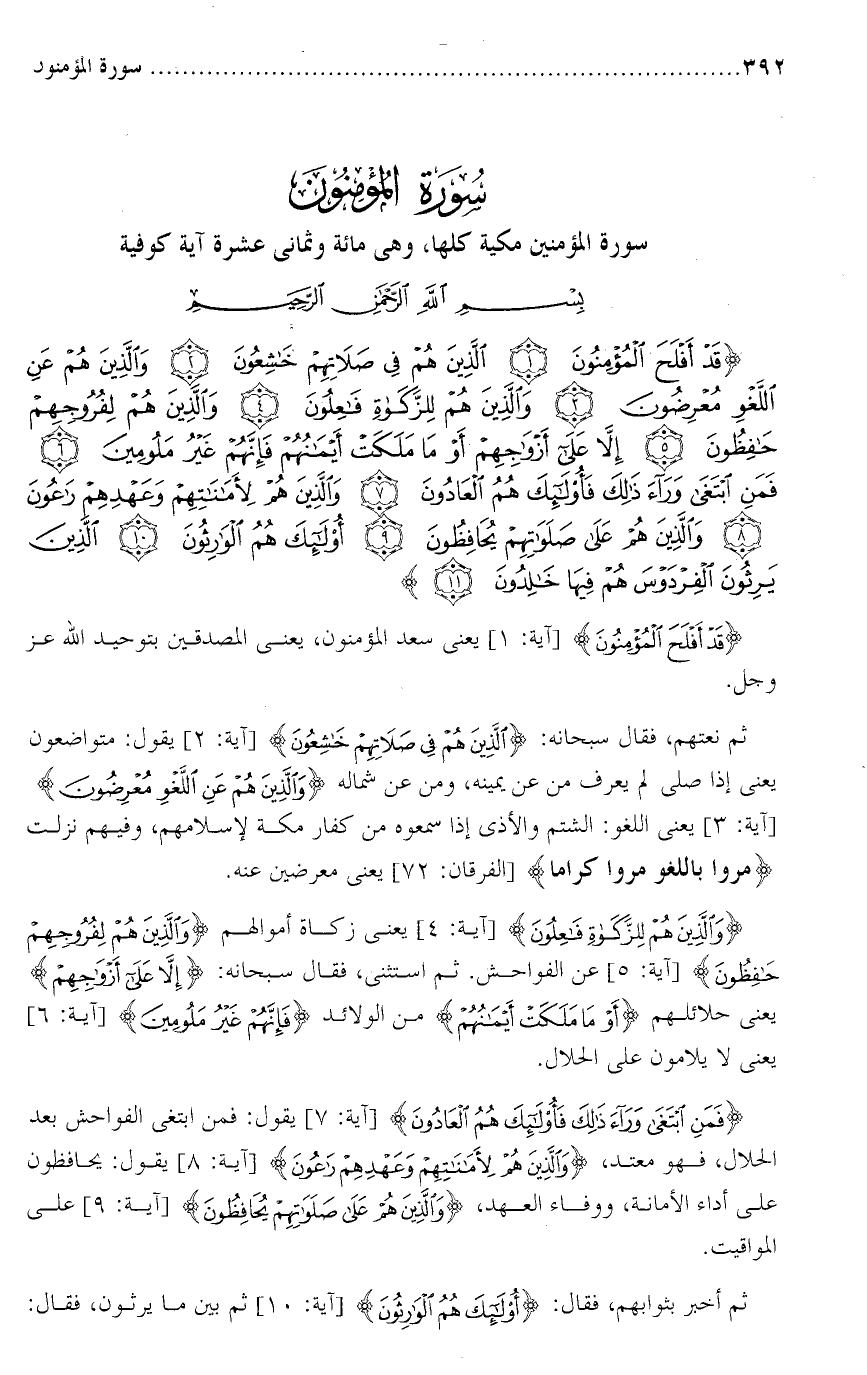 تفسير سورة المؤمنون من الآية : [ 1 - 11 ] .