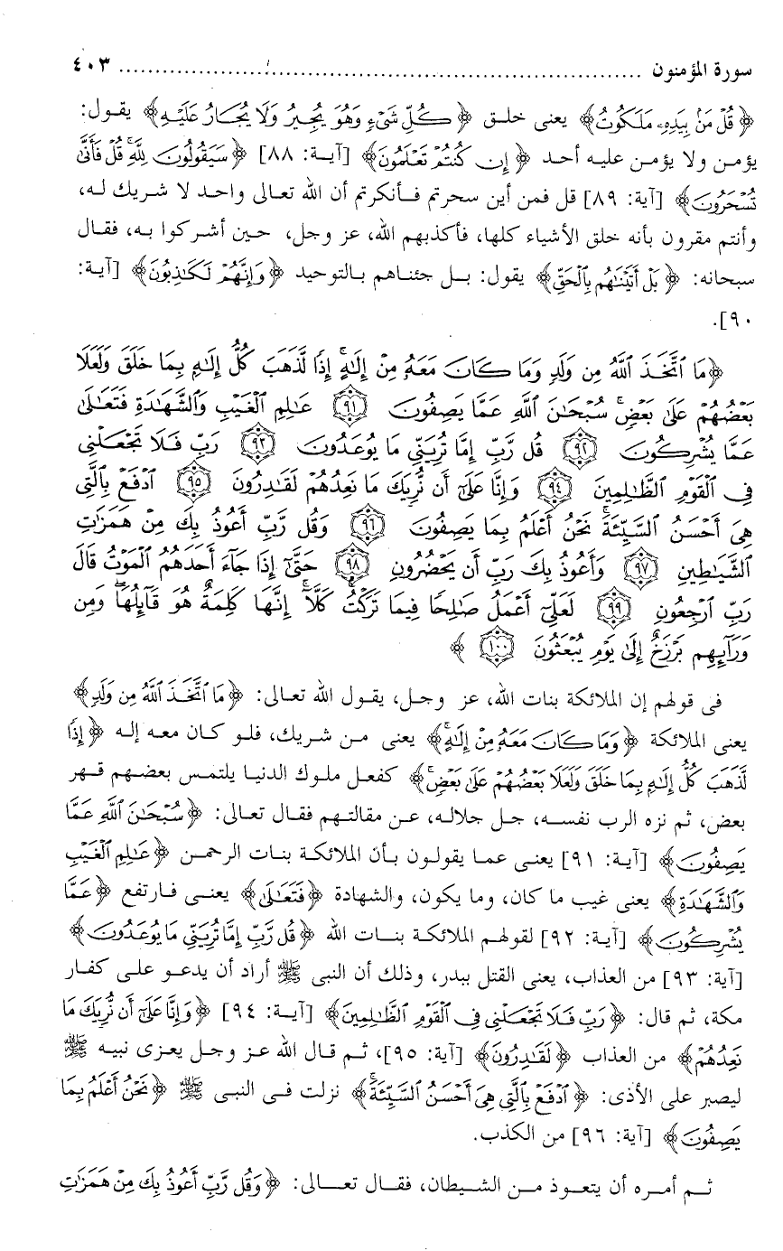 تفسير سورة المؤمنون من الآية : [ 91 - 100 ] .