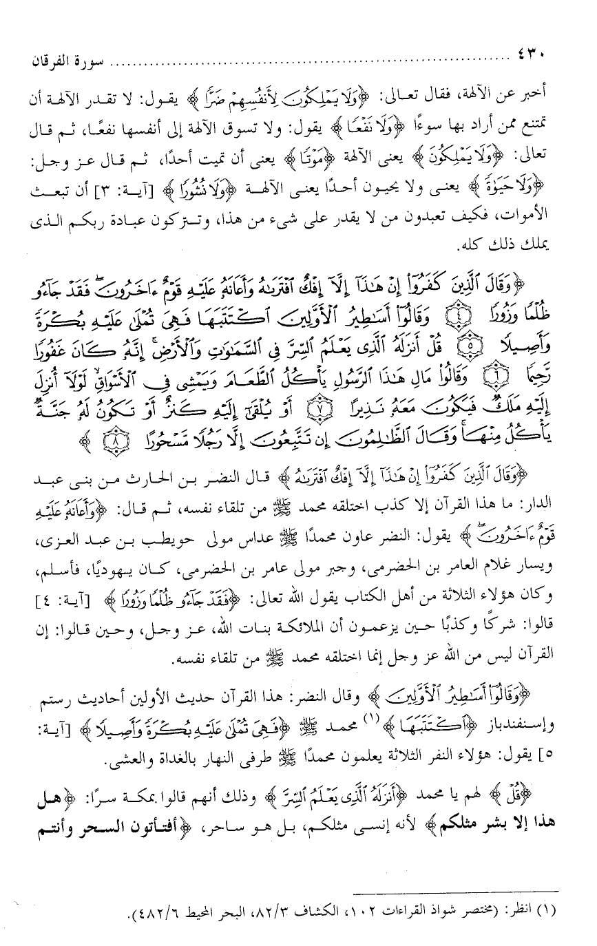 تفسير سورة الفرقان من الآية : [ 4 - 8 ] .